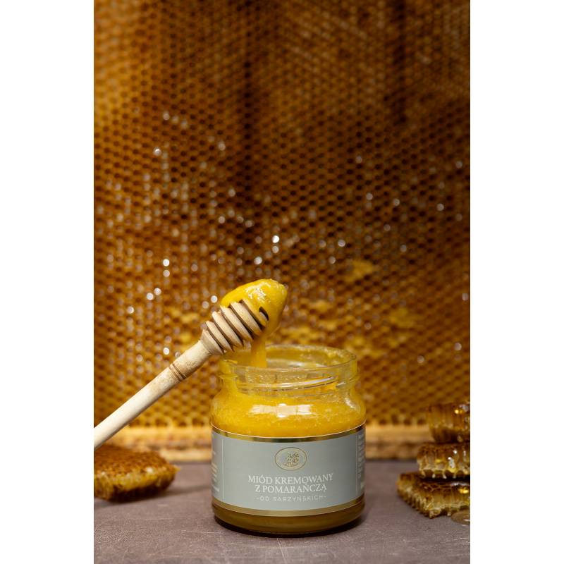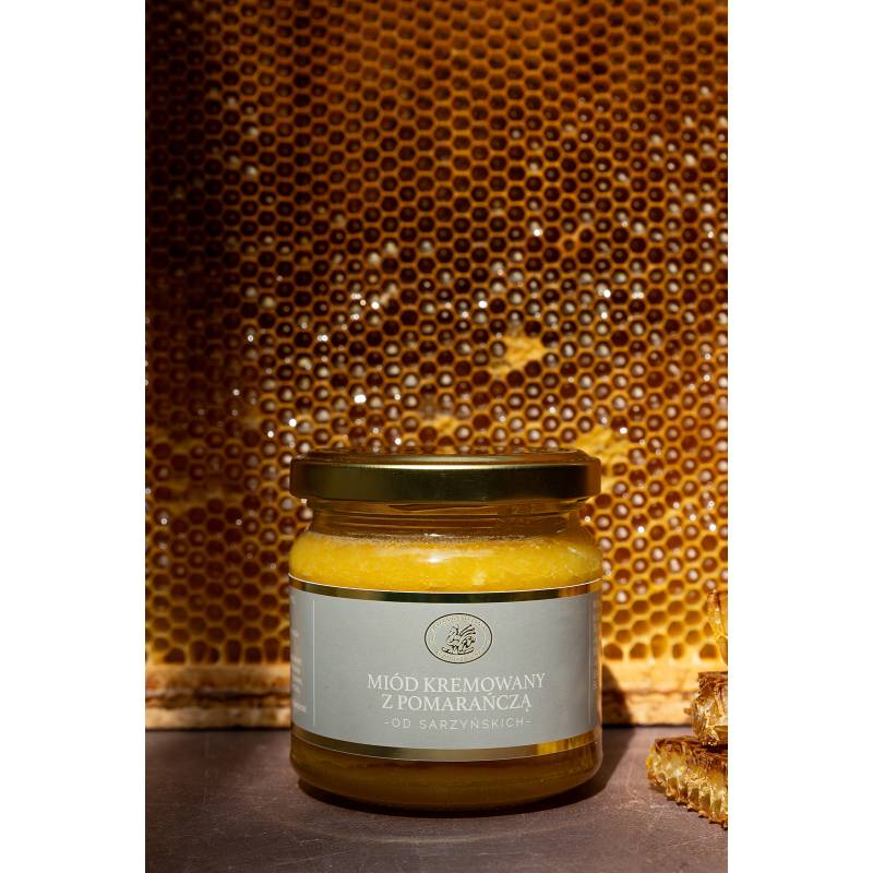 Miód wielokwiatowy z dodatkiem pomarańczy liofilizowanej.