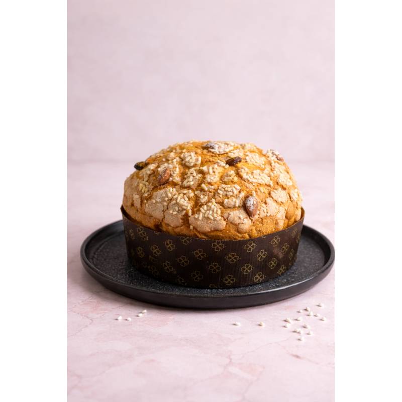 Panettone classico - klasyczna, delikatna w strukturze maślana baba na zakwasie lievito madre, bez dodatku drożdży z mnóstwem żółtek, rodzynek i skórki pomarańczowej z Sycylii o długim terminie przydatności.